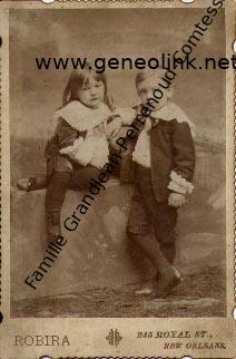 Georges Henri GRANDJEAN-PERRENOUD-COMTESSE, ingénieur CIVIL, fils de Henri GRANDJEAN-PERRENOUD-COMTESSE et Reine Mélina « Mélina » PERRENOUD, naquit le 2 juillet 1849 à LA CHAUX-DE-FONDS, -, Neuchâtel, Suisse et mort le 17 juin 1900 à NEW ORLEANS, -, LOUISIANE, USA à l’âge de 50 ans. Il a épousé Francine Joséphine FRÉMAUX, fille de Léon Joseph FRÉMAUX et Flore Caroline Marion DE MONTILLY, le 24 avril 1879 à NEW ORLEANS, -, LOUISIANE, USA. Elle naquit le 3 août 1852 à DONALDSONVILLE, -, Louisiane, USA.