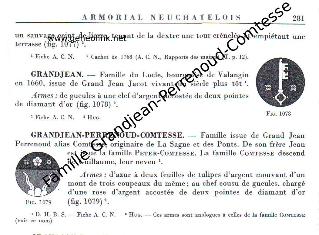 | Décès du père | Pierre GRANDJEAN-PERRENOUD-COMTESSE mai 1626 (Âge 6 ans) Note : 1600 - 1707 : Principauté de Neuchâtel