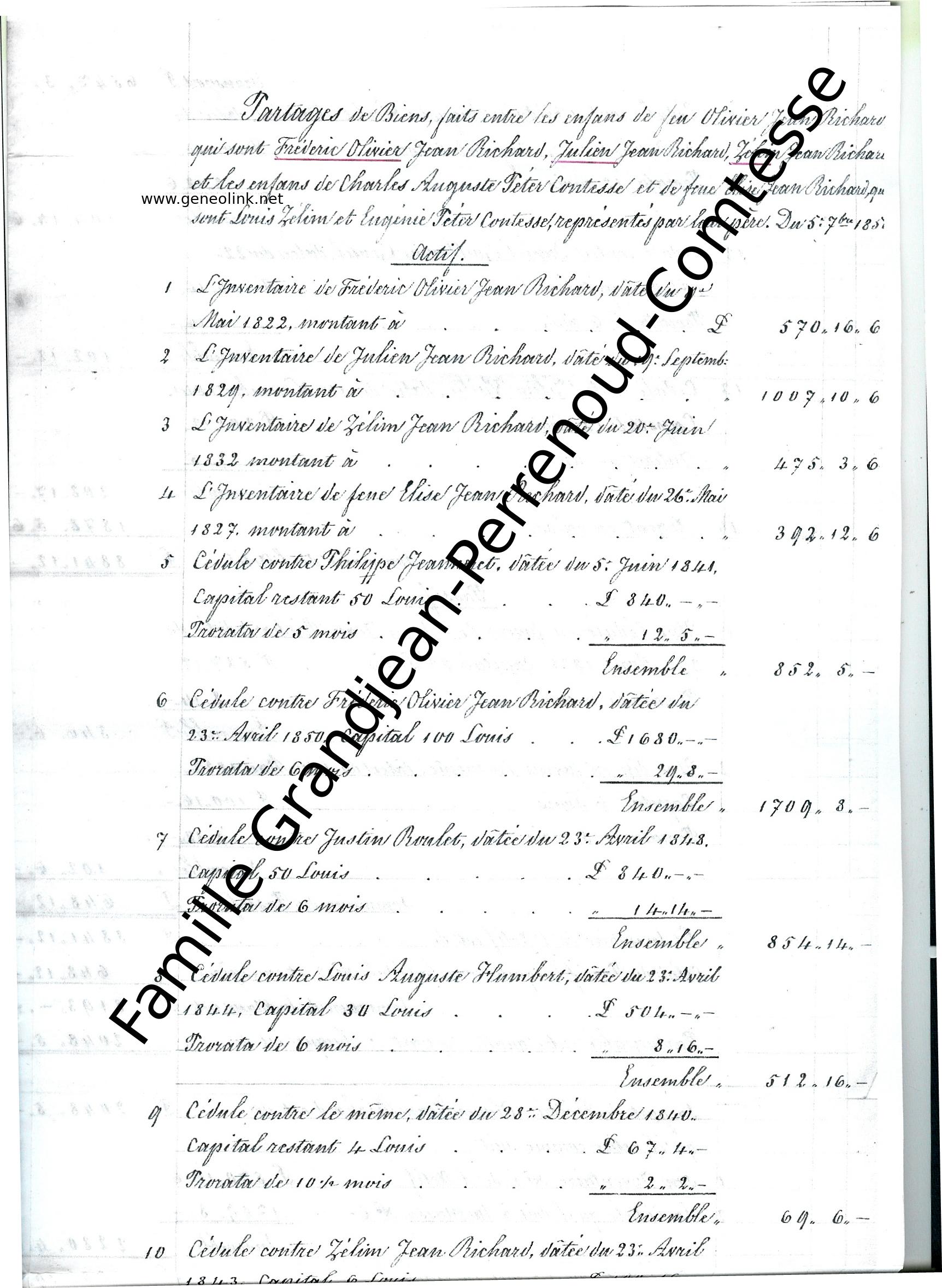 Charles Auguste PÉTER CONTESSE, fils de Louis PÉTER CONTESSE, naquit le 17 février 1797. Il a épousé Elise JEAN-RICHARD, fille de Olivier JEAN-RICHARD et Dorothée VUILLE, en 1827. Elle naquit le 13 avril 1800 et morte le 5 septembre 1850 à l’âge de 50 ans.