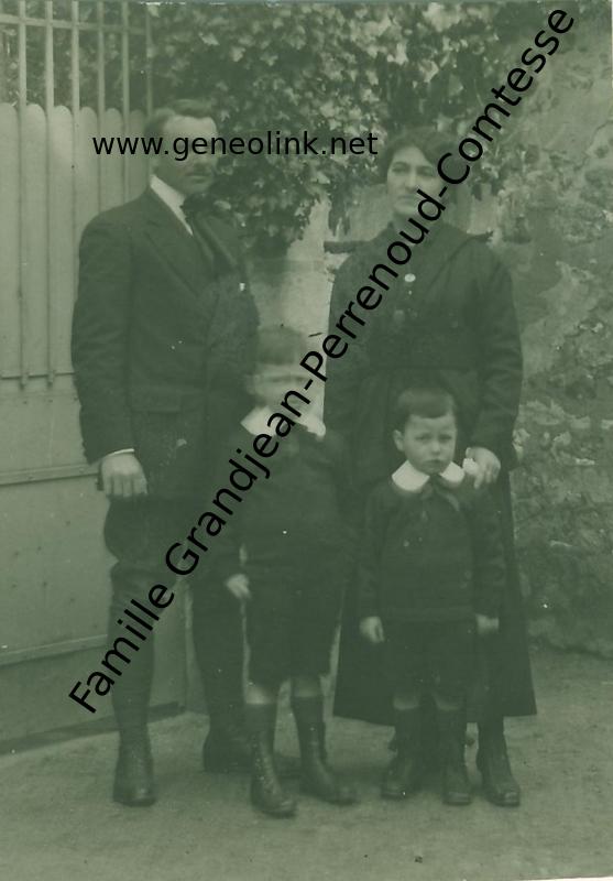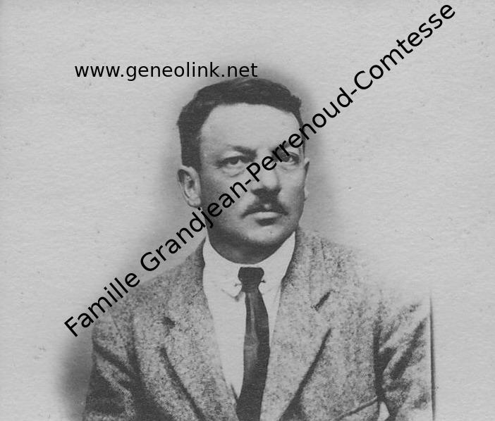 Louis Victor « Victor » GRANDJEAN-PERRENOUD, agent commercial dans le caoutchou (en 1905) et electricien, fils de Victor Arnold « Arnold » GRANDJEAN-PERRENOUD-COMTESSE et Marguerite Angèle PERRET, naquit le 5 mars 1884 à LA CHAUX-DE-FONDS, -, Neuchâtel, Suisse et mort en 1938 à NOZEROY, Jura, Franche Comté, France à l’âge de 53 ans.